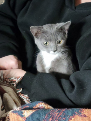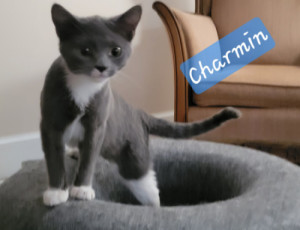 Charmin is a complete snuggle buddy if you earn her trust. Her fur is so sleek and smooth and fun to pet, and....she loves to be pet. She loves to play with your hair! And she is VERY interested in the pocket door to her room. She loves to watch it go in and out of the wall. Charmin is always happy to see her humans!