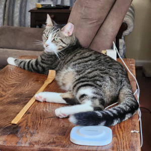 Ken was born in 2023 and was adopted as a kitten. After having him for 2 years, the adopter decided he did not want him any more and took him to a kill shelter. Our contract does say that if you cannot keep the cat for any reason, you must return the cat to Feral Cat Rescue. Clearly this former adopter is not someone I would want to know. Fortunately for Ken, we microchip our cats and the shelter called me and I went to get him and he has been living with me ever since that day. He was terrified at first. It took him a long time to trust me but he does now. I can walk over to him and pet him. My lap is usually full with cats so he has not come to sit on my lap. I am hoping someone will foster to adopt him and be patient with him and I bet he will turn out to be very sweet. Would you consider giving this boy a chance?