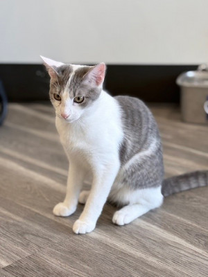 Sheldon was born in a feral colony with his brothers, Georgie and Cooper. Sheldon loves to play with his brothers and the other cats at the Cafe. He really enjoys canned food. He has a big purr motor and enjoys being petted.