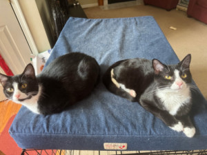 I'm Nebula and I'm the boss of my brother's Groot and Rocket. I like the toys best of all and I want them all to myself. I like to come greet you when you walk in, and I like to be pet so I can purr for you. Of the three of us, I'm the most independent and solitary if you're looking for a good fit like me!!!